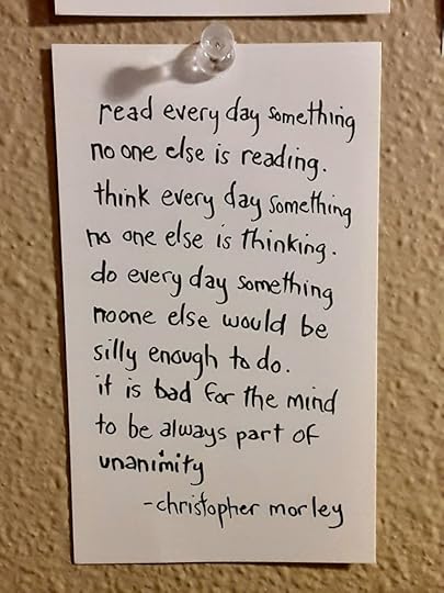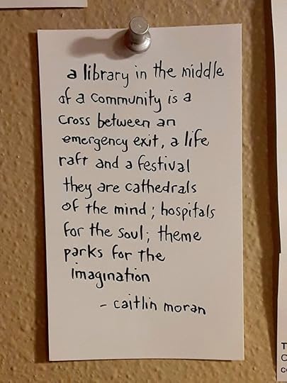 Here’s another favorite quote about books that I’ve handwritten and thumbtacked to my studio wall.