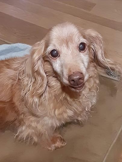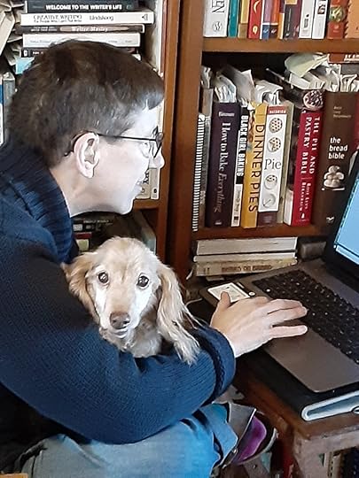 Here I am, with canine supervisory assistance, setting up the digital files for sending to Storyberries.