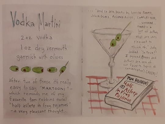 We had a good weekend talking about the books we’ve been reading! We do this often – it’s one of the many fun things we do together! A sample conversation is in our kitchen sketchbook of our favorite dishes – titled Favorites So Far – we’d published when we’d only been together 24 years. Our conversation about books is on a drink recipe.