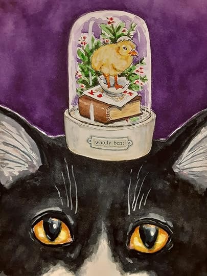 I painted an unauthorized portrait of a playful cat that I’ve met courtesy of a dear friend. This portrait is titled “Wholly Bent” and is 10 x 8 inches. This is me just playing and working towards future art exhibits.