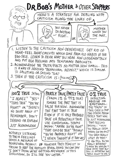 My last post also talked of book banning, a topic I’m following… well, on the attempts to ban books (and a thrilling subtext) there’s this article which reminded me of the skills I learned to use when dealing with people in Oklahoma who were in my face wanting to ban my artwork (see a prior post for details). This page below from Dr Bob’s Emotional Repair Program First Aid Kit gives details about the skills.
