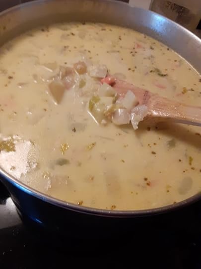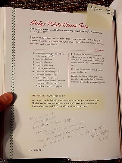 Dinner recently was a favorite potato soup recipe from a favorite cookbook. Even in the solitary pandemic days I love reading about community being formed around shared soup.