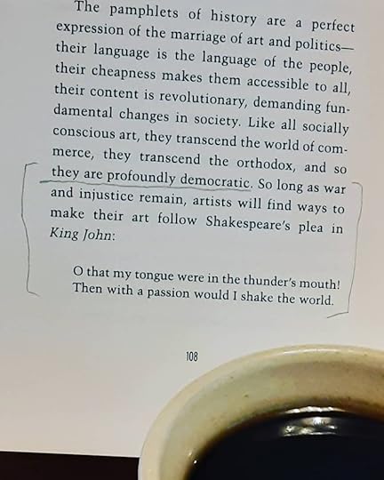 Spoiler: artists are carriers of democracy. To quote from page 108 they are “profoundly democratic”. Democratic is defined as upholding, however imperfectly, the ideas of rule of law, of equality before the law, equality in access to resources, equality of representation in government and the human right of self determination. The Arts are a living language of a people, a dramatization of what they feel, what they need, what their hopes are … The Arts help people become self aware. Self-awareness helps people make choices and become active participants in their own lives and communities. That’s what makes living artists so dangerous in the viewpoint of authoritarians.