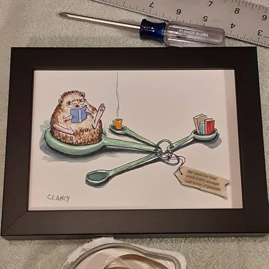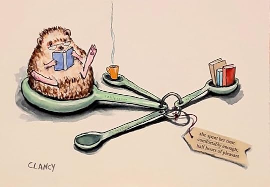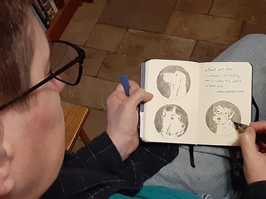 Despite all of the busy-ness I still did drawings in my sketchbook in the mornings and my evening reading of books before bed. Makes for nice creative bookends, pun intended, to a day.