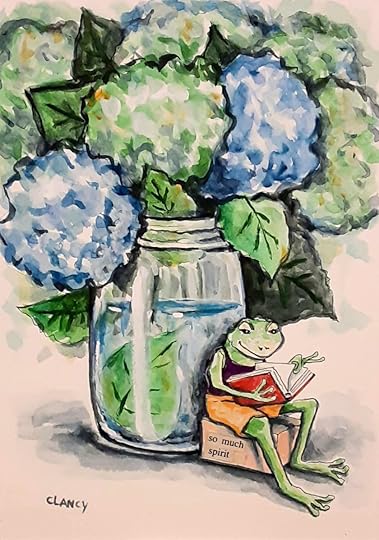 Contrary to what it may seem like having two main art projects with deadlines actually frees up my brain time. In addition to playing in my sketchbook I can get some reading done! I’m within whiskers of finishing “A Swim In The Pond In The Rain” by George Saunders for the 2nd time. Gosh I’m glad I bought my own printed copy of this book … it’s such a good source of creative encouragement!