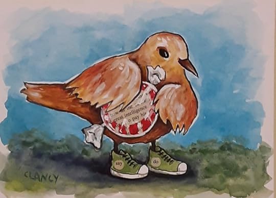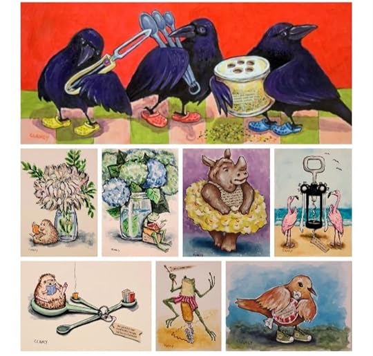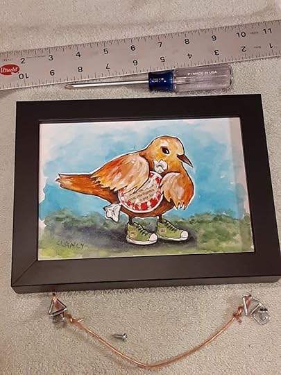Random unplanned unscripted associations were how I got the ideas for each artwork in my Odditorium series so a little more uncertainty about the exhibit itself isn’t really a problem. Of course I hope for sales – I almost can’t help hoping that – but I don’t have big expectations. My main hope is that people will just enjoy my artwork, that it will brighten their outlook at least a little, give them a sense of comfort and care as we all cope with this pandemic. The funny thing is that this hope of mine, that my work will lift spirits, is something that I may never know whether it worked. And that’s okay. A songbird doesn’t know when it’s music is enjoyed either.