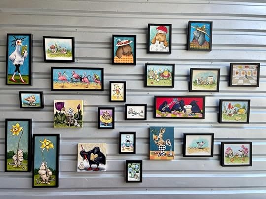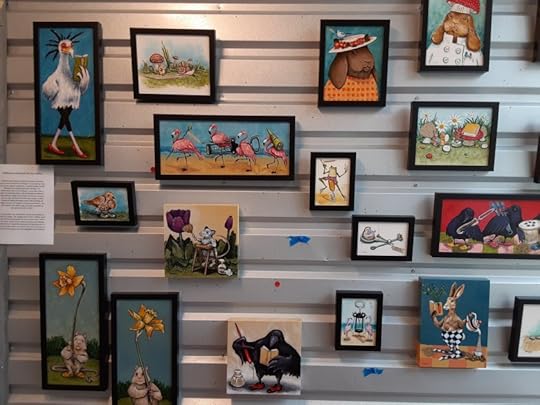 After our conversation I left my art in the Gallery in boxes. Not very long later the owner sent me this photo of the paintings hung on the wall!
