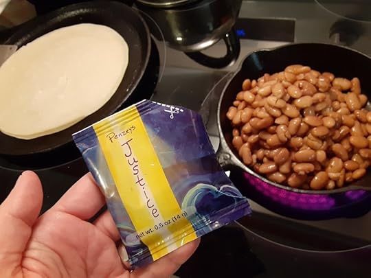 Since this was another busy week it was easier to reheat magic beans and put them in a tortilla with veggies and cheese. Given the recent disturbing news out of Texas I was inspired to try Penzey’s Justice spice mix on my bean burritos. I like Justice.