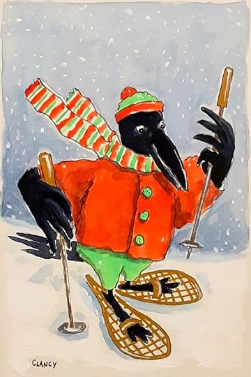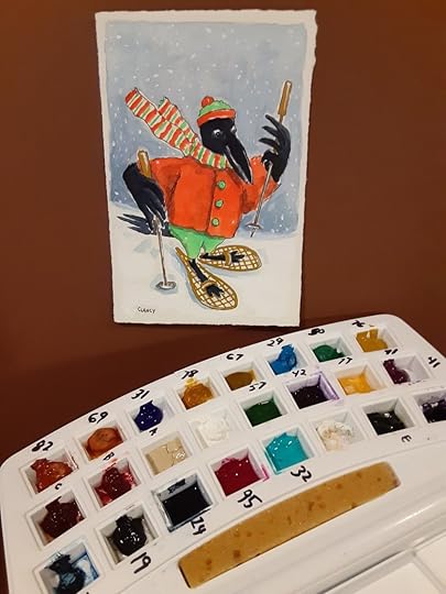 Below is a closer look at my finished artwork. After I get a few more for-cards artwork pieces finished then I’ll upload all of the images and design the cards. I’ve titled this piece below “Crowshoes”