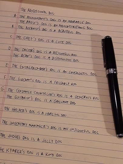 I’m in the process of contacting friends and asking them to email or text photos of their dogs – and asking questions about their profession. These responses will help me narrow things down.