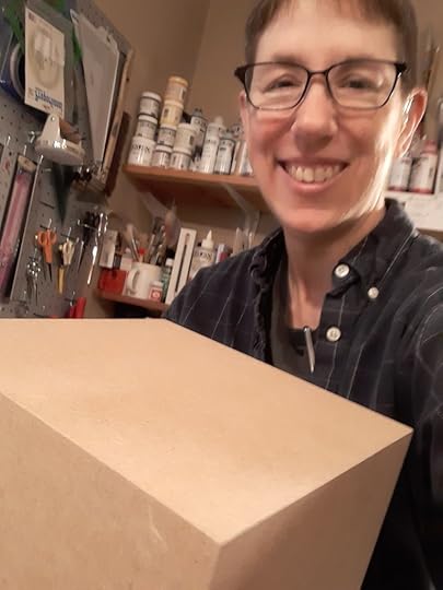So one of the focal points this week was a masked-up very quick in person visit to the Caplan Art Designs gallery in Portland Oregon. The Gallery invited some of the Gallery artists to participate in a “Holiday Box Exhibit”. We were given wooden box cubes and asked to do something with the cube in our art style. The cubes are 8 inches square.