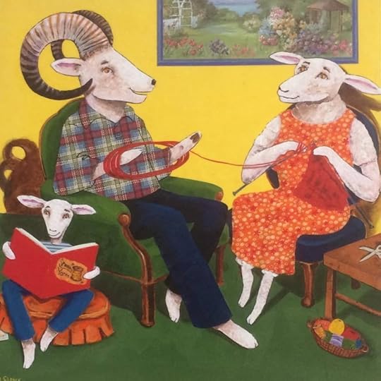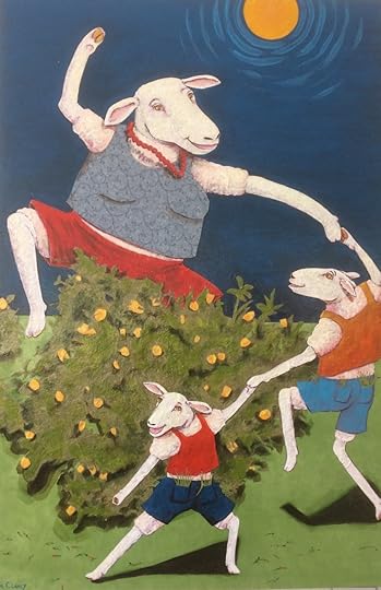 The other focal point this week was my exhibit “The Old Stories” that opened in Oklahoma at Downtown Art and Frame. Each of these paintings are about stories: a folktale, a myth, or an ancient children’s rhyme or saying. For example the one with the dancing sheep is titled “Ewephoria” and it’s about the history of the rhyme “ring around the rosies, pockets full of posies…” (Black Death)