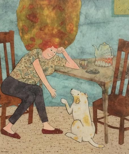 I’m steadily progressing on my children’s book “The Professional Dog”. Here are three art pieces together so you can see how the colors flow from one piece to the next. This project will be both a book an art exhibit. So each piece needs to both work with the others and stand alone. My last post tells more about this project.