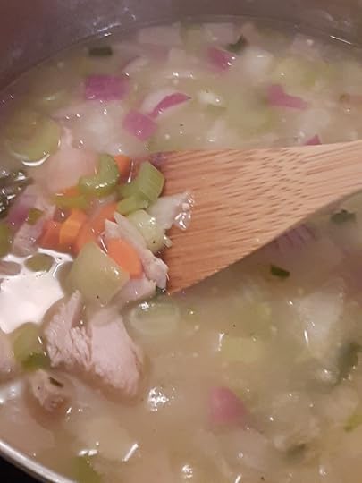 Anyway, speaking of taking care… it’s soup weather here in the Pacific Northwest! So I got out one of our favorite cookbooks “The Big Book Of Soups and Stews” by Vollstedt and made the recipe for chicken noodle soup. I used precooked chicken as a shortcut but otherwise followed the recipe. It’s so yummy and really feels kind to the soul.