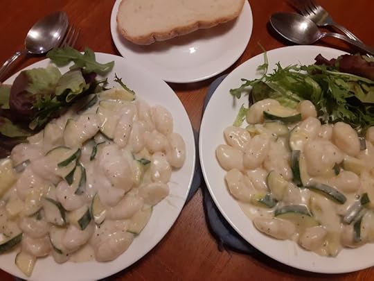 This week for the main special get-creative-in-the-kitchen project I added sauteed zucchini but otherwise mostly followed this creamy gnocchi sauce recipe https://www.acouplecooks.com/easy-creamy-gnocchi-sauce/ It was tasty but a bit more heavy than we like to eat so I probably won’t make this again. Still, I’ve not cooked gnocchi very often so it was fun to try it.