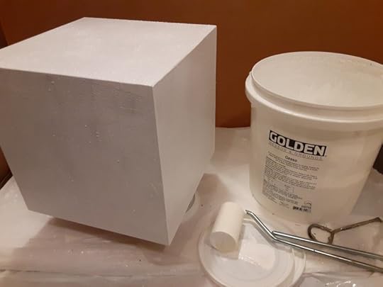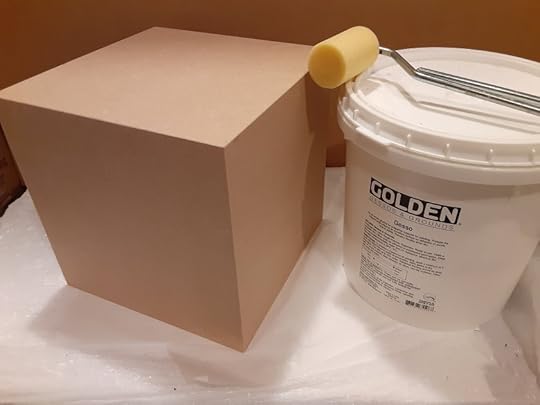 In my last post I spoke of picking up a box, a cube really, from the Caplan Art Designs gallery. The Gallery asked several of their artists to do something in their art style for what the Gallery is calling the “holiday box project”. Over this week I put 3 coats of gesso on my box. I also did some brainstorming in my sketchbook about what I might do with the cube.