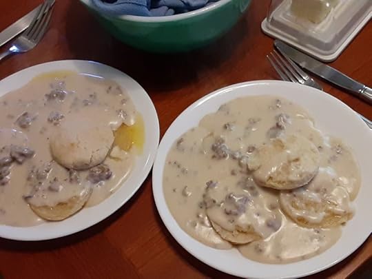 The yummy comfort food this week was homemade biscuits and gravy! See recipe postcards above or via these links: Judy’s Biscuits and Good Gravy. It was a fun collaborative brunch!