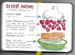 And here are some recent recipe gouache and ink sketches from my kitchen sketchbook (BTW: when we ran out of fresh strawberries I substituted frozen blueberries in the “Dessert Anatomy” sketch)