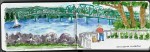 Here are more pages from my “Running Around Loose” sketchbook – link to the ebook here – and the fine art pieces they inspired. These are in a current exhibit, titled “Community Creatures” at The Anstine Gallery. I don’t think an artist’s life has to be too mysterious – so I show my sketchbooks when I can in whatever formats I can; ebook, hard-copy book, photocopied pages thumbtacked on a wall. Whatever works for that particular exhibit. Besides I’ve been told that people enjoy seeing my sketches too – and for me that’s reason enough to do the “extra” work. I enjoy demonstrating the fact that “artistic inspiration” can come from very mundane sources. Anyway, I’m sure you can see the connections between the sketches and the artwork in this post.