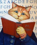 The local libraries and bookstores are, for me, a large treasure-toy box. Which got me thinking of how we select books according to our interests. The libraries and bookstores also have books available in a wide variety of languages – and its fun to see them too. This got me to thinking about the alphabet. Each language has its own – and when we say “the alphabet” we immediately think of our native tongue whatever it is. Likewise, when we think of “good books” we think in terms of our own interests and preferences. But when we’re aware of bi-lingual people and the multiplicity of this world – perhaps we are better able to remember that our languages and personal preferences are just frames of reference. And that frames are adjustable. So what frame of reference would a cat have? A mouse obsessed one of course!