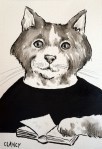 This coming Friday, June 1st at Burnt Bridge Cellars my cat portrait exhibit “Purrsuits of Pleasure” opens. Because I don’t think artistic inspiration needs to be mysterious I include the story behind each art piece. The text illustrates, so to speak, my visual images.