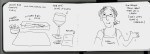 In other sketchbook pages I tried more orange-peel attempts and here below is the last sketchbook orange-peel drawing – and the drink recipe that I decided to use within the painting.
