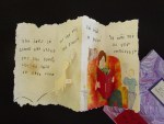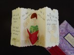 Here are a few photos of one of my books in the exhibit. It’s titled “Self Portrait As A Wicked Book”. I made it with handmade paper, hand-marbled paper, ink… and two original limerick poems.