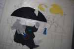The Judge’s glasses are made of two pieces of paper: I cut the glasses frames out of a “gold” paper and glued them onto a white paper which acts as the “lenses”. All elements within the artwork are cut hand dyed papers which interlock.