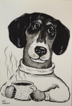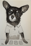 Fuzzy by Clancy (ink on handmade paper) – and yes, this dog is in the book “Dogs by Sue Clancy”