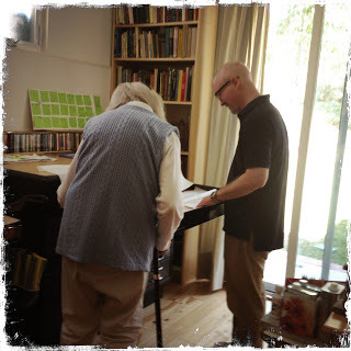 We had a delicious lunch. Alice's daughter and son-in-law made us THREE different kinds of salad. I brought the cookies. We shared the artwork that we've been working on, Andy's watercolors for magazine covers and sketchbook, Alice's new book, Murry in the City, and my doodlings from the iPad and Haunted Histories.