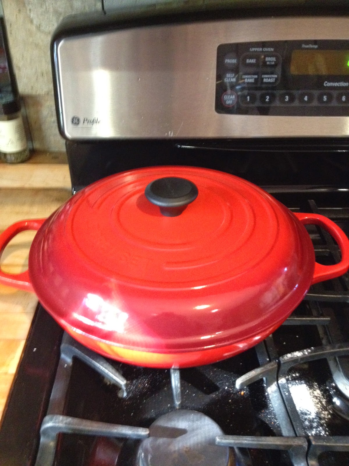 Christmas morning I found this Le Crueset braiser under the tree. I love it like Gollum likes rings. It works a treat and goes right from burner to stove. It weighs a ton but I don't care.