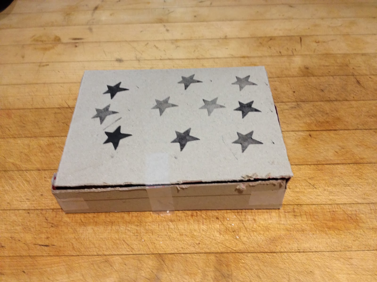 I wanted to take some to my mom's house so I turned the empty cake mix box inside out, taped the corners and stamped the cover with stars. Instant container!