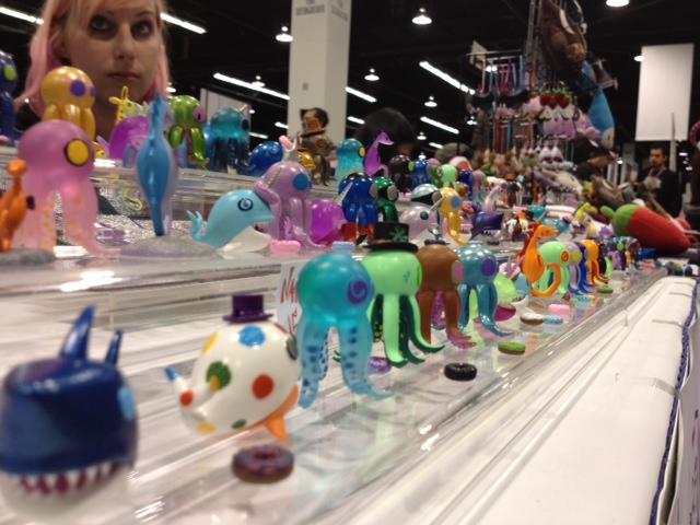 This array of whimsical handmade toys is from Victoria Rose and Ann Sidenblad's booth, Rawrz Toys. Lovely stuff! http://rawrztoys.com/