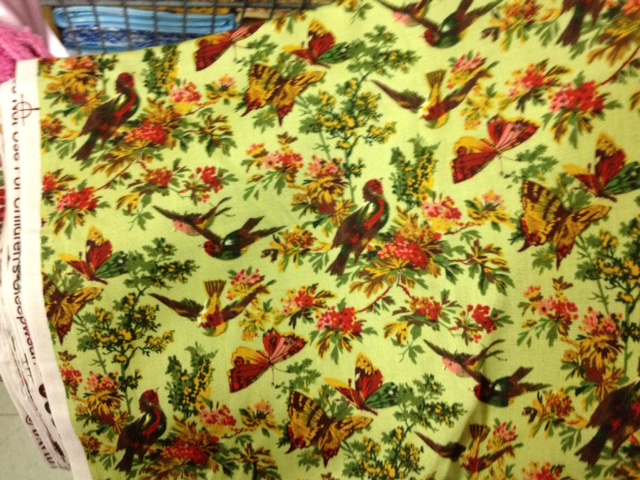 I thought this strange bird fabric was cool but didn't buy it because I couldn't think of anything to make with it. Maybe the lining of a jacket? What do you think? Suggestions?