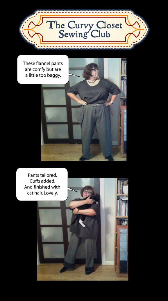 So I put together a plus size clothing line for one person, me, and started sewing. Here is what I've made so far... Some pieces missed the mark, like the flannel pants... they are huge. I feel like Kipling's rhino when I wear them, and one of the pockets is backwards. Other pieces are wins. The kimono sweatshirt is amazing, simple, warm, yet much more flattering than a regular sweatshirt.