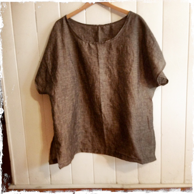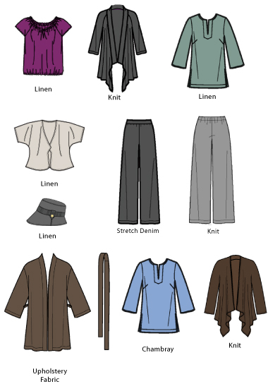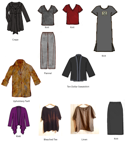 I have ten to twelve more yards of this purple color in linen and cotton. I'm not sure what I'll do with it all yet. And below is some of the things that I'm working on. The scoop neck top is don. I'm going to try the knit pants next.