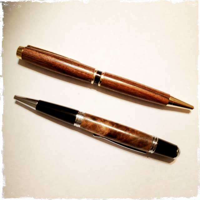 Lovely hand turned exotic wood pens = thirty bucks plus S&H.