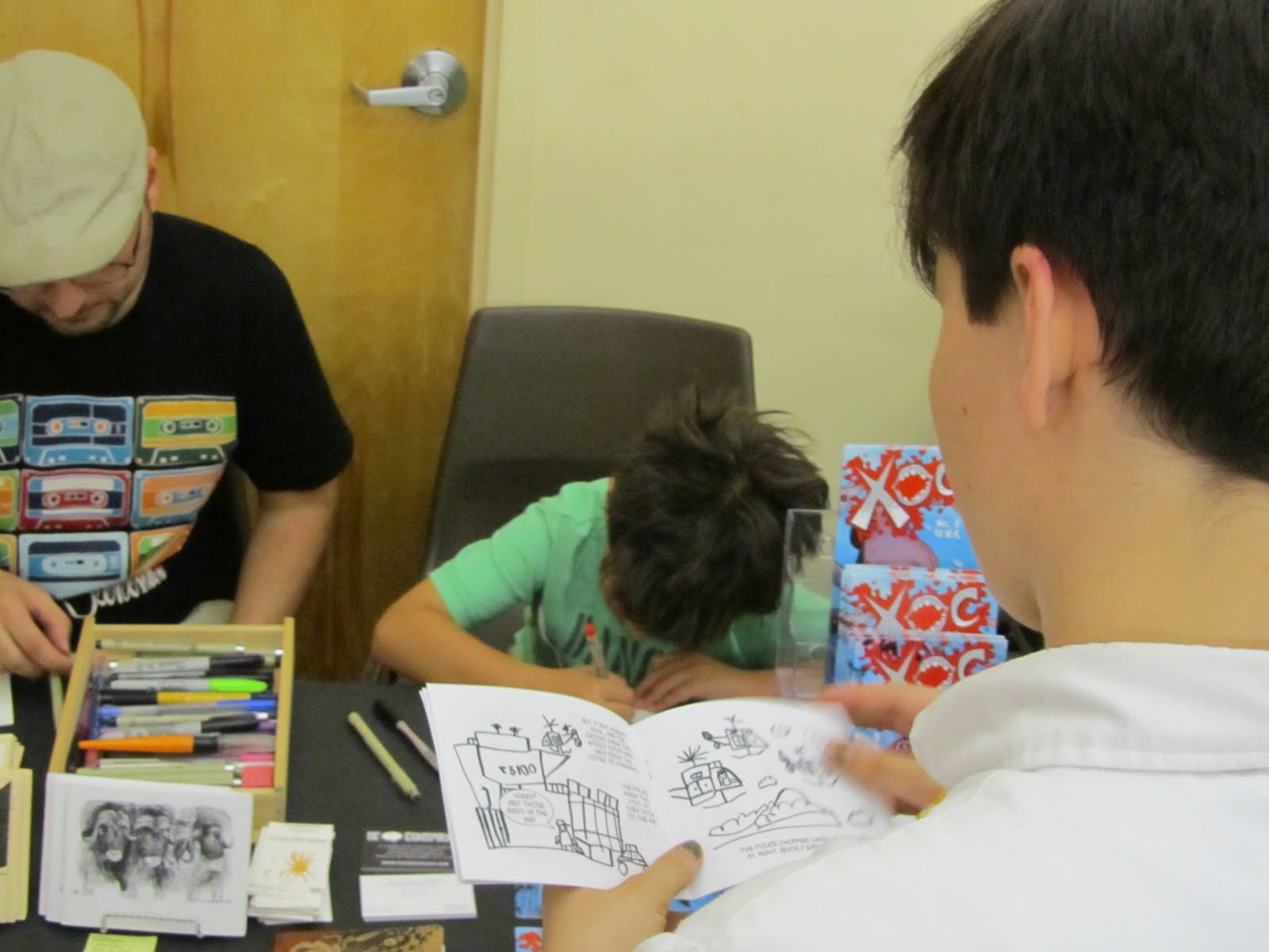 Here are some photos from today's D.C. Zinefest, the city's first zinefest in at least a decade. It had a good vibe, and a good number of local cartoonists were on hand. The D.C. Conspiracy had a workshops on comics and artist/friend Steve Loya held a workshop on his magnificent splotch monsters.