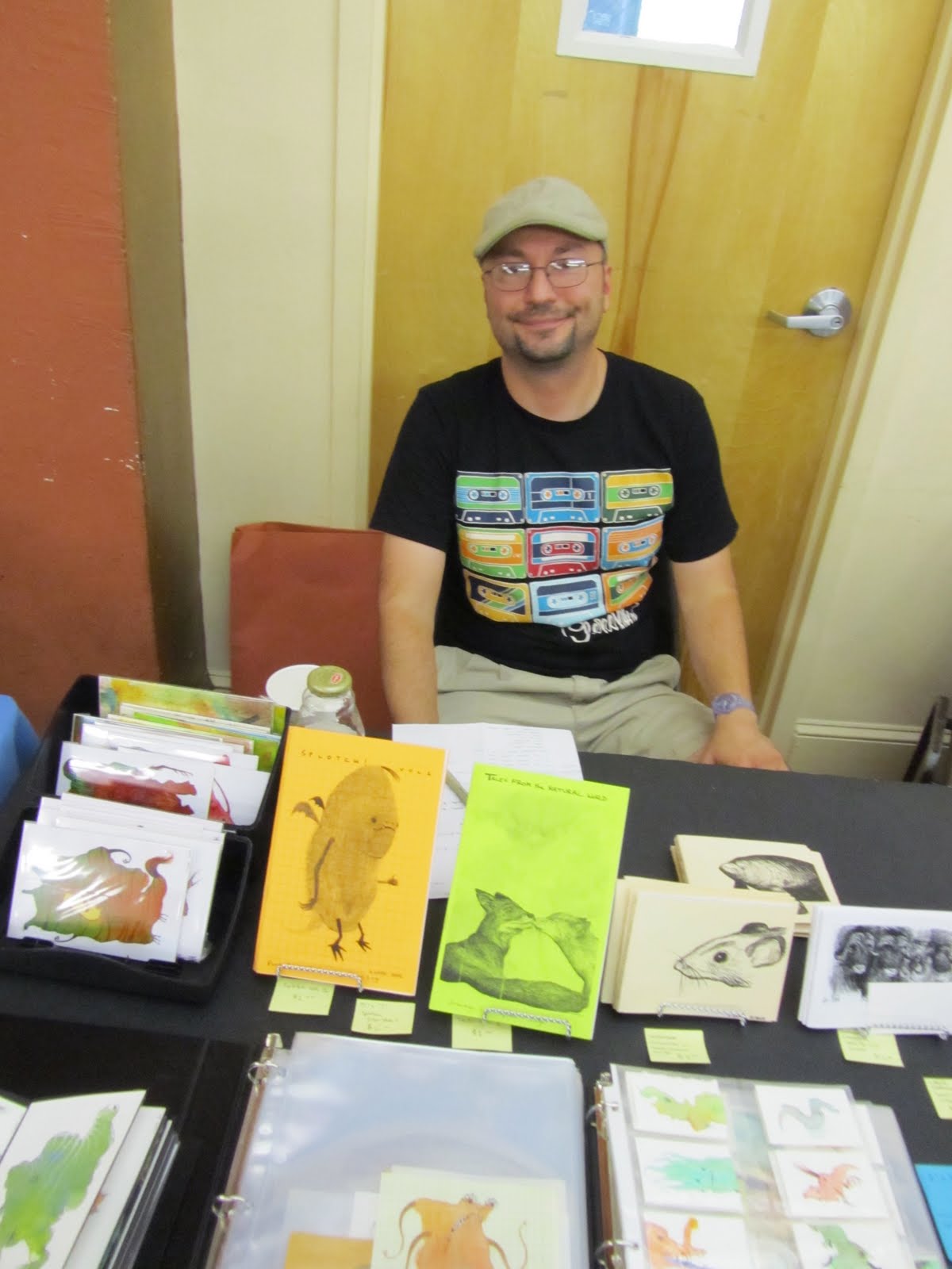Steve Loya selling his wonderful animal drawingsand splotch monster illustrations.