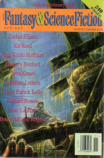 Here’s where I discover that the magazine is now called simply Asimov’s Science Fiction, and is no longer the chunkier Isaac Asimov’s Science Fiction Magazine (IASFM), which is how I first knew it. And I bought the very first issue off the newsstand racks, 40 years ago.