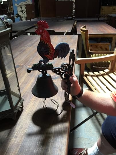 But we did fiind this lovely iron rooster dinner bell that will hang somewhere in our backyard.