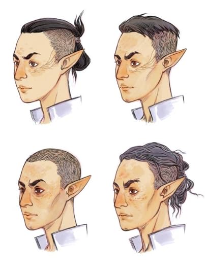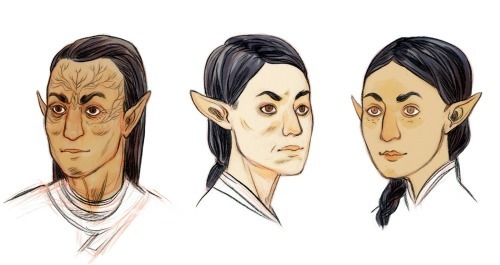 Here are portraits of my Inquisitor (Avriel) at various ages (with various possible hairstyles). #2 is the in-game look. #3 is the bonus, “I just got dumped by a god, only to return and discover that I’d screwed up a war table mission and killed my entire clan” look.