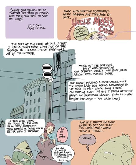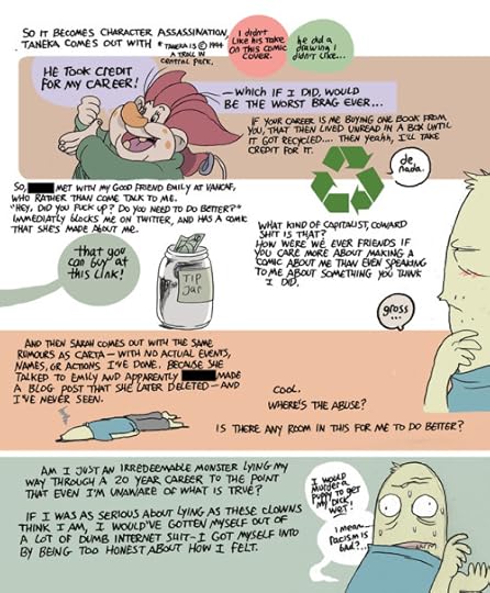 the comicsgate stuff is still a bummer, and even the people I was shitting on in that comic deserve to make their work in an environment that doesn’t attack their gender, sexuality etc. I hope I was clear in going after just their actions and not who they are.