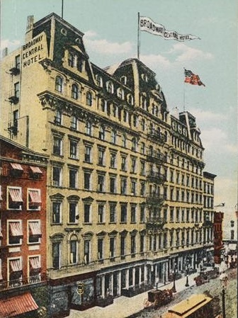 What else would diners be thinking that night? Many might have reflected on the hotel itself. An eight-story, 600-room hotel opened in 1870, the Broadway Central—known as the Grand Central until 1892—was long an opulent resort for Gilded Age New York’s political and business elite.