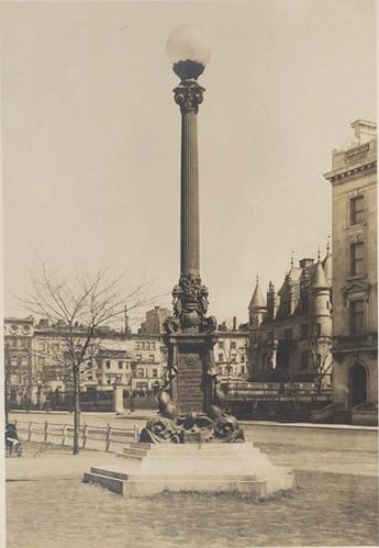 So how did a memorial to Henry Hudson end up on Riverside Drive, opposite the Drive’s row house mansions and free-standing palaces, including the 75-room, Chateau-like Schwab Mansion (at right)—and why was this remnant of early 1900s Gotham removed?