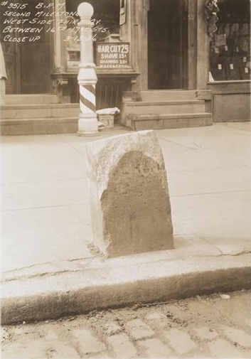 Until the urbanization of the bulk of Manhattan Island in the late 19th century, milestones were often the only directionals a horseman or stagecoach driver had as they journeyed up or down one of Manhattan’s few north-south roads.