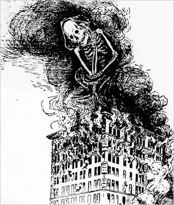 This one above is by John Sloan, published in The Call. The illustrator of the second image is unknown, but that sure looks like the Asch Building, where the Triangle fire occurred.