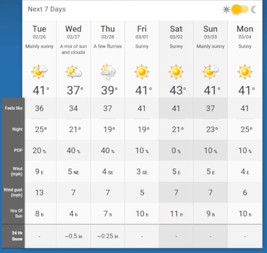 Then, six days in, we got hit with a mild case of polar air. 17F is pretty cold for this region. Still, nothing a cup of hot cocoa and a warm blanket can’t fix.