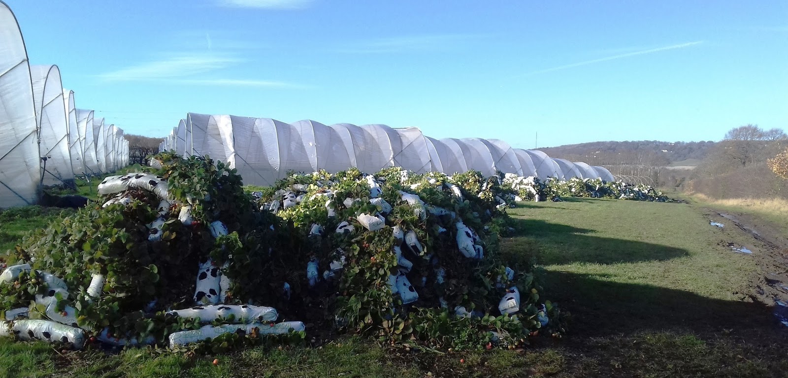 the poly-tunnels empty, a shoulder-high