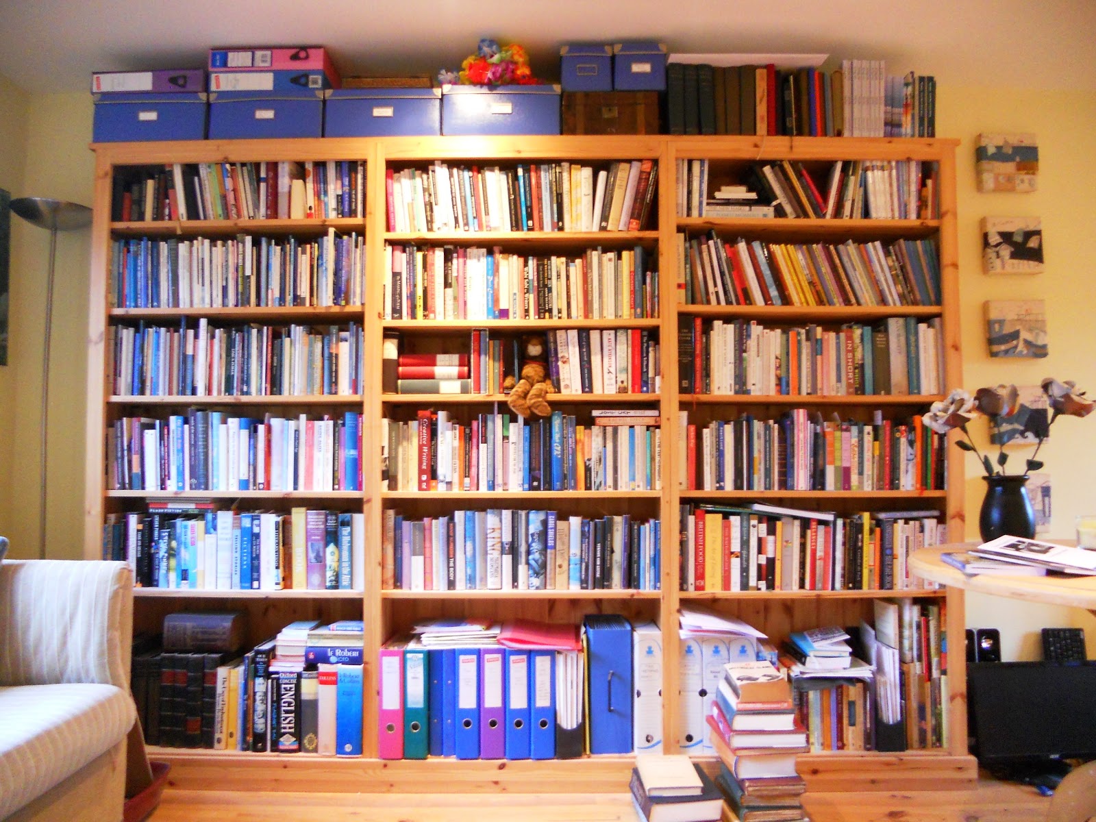 Following the aforementioned cull, and having to leave a few dozen metres of shelving in the French house, my books (almost) fit into the new shelf unit I bought when I came back in 2011. They are mostly books about writing, memoir, food and a non-fiction smattering of philosophy and history. And poetry. A lot of poetry, many of which I've only glanced through.